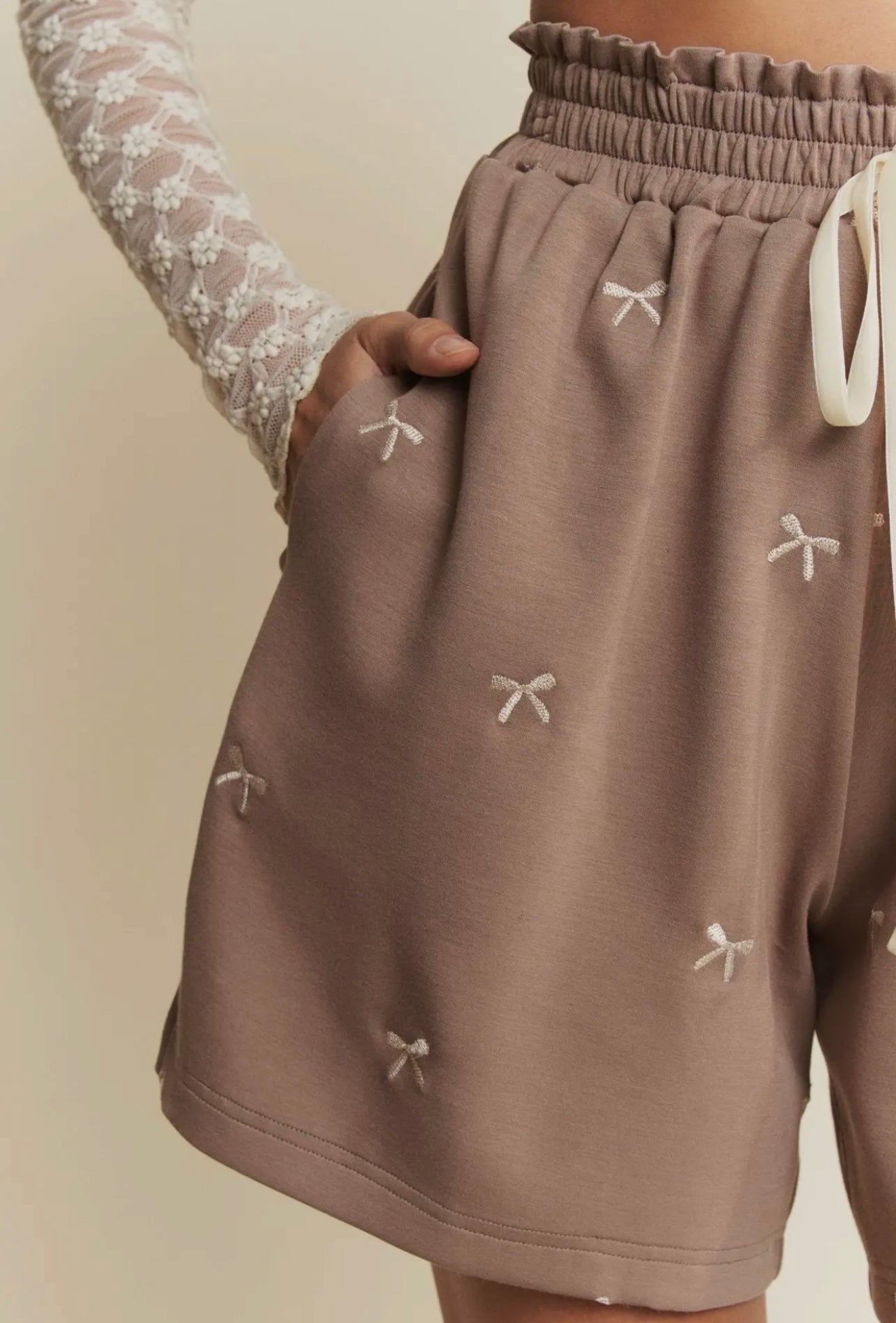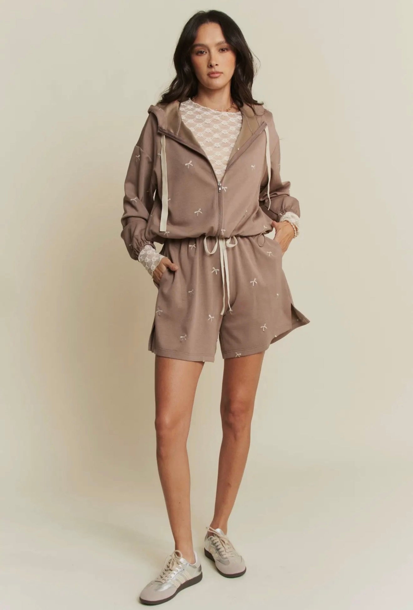 Velvet Ribbon Hoodie & Shorts Set